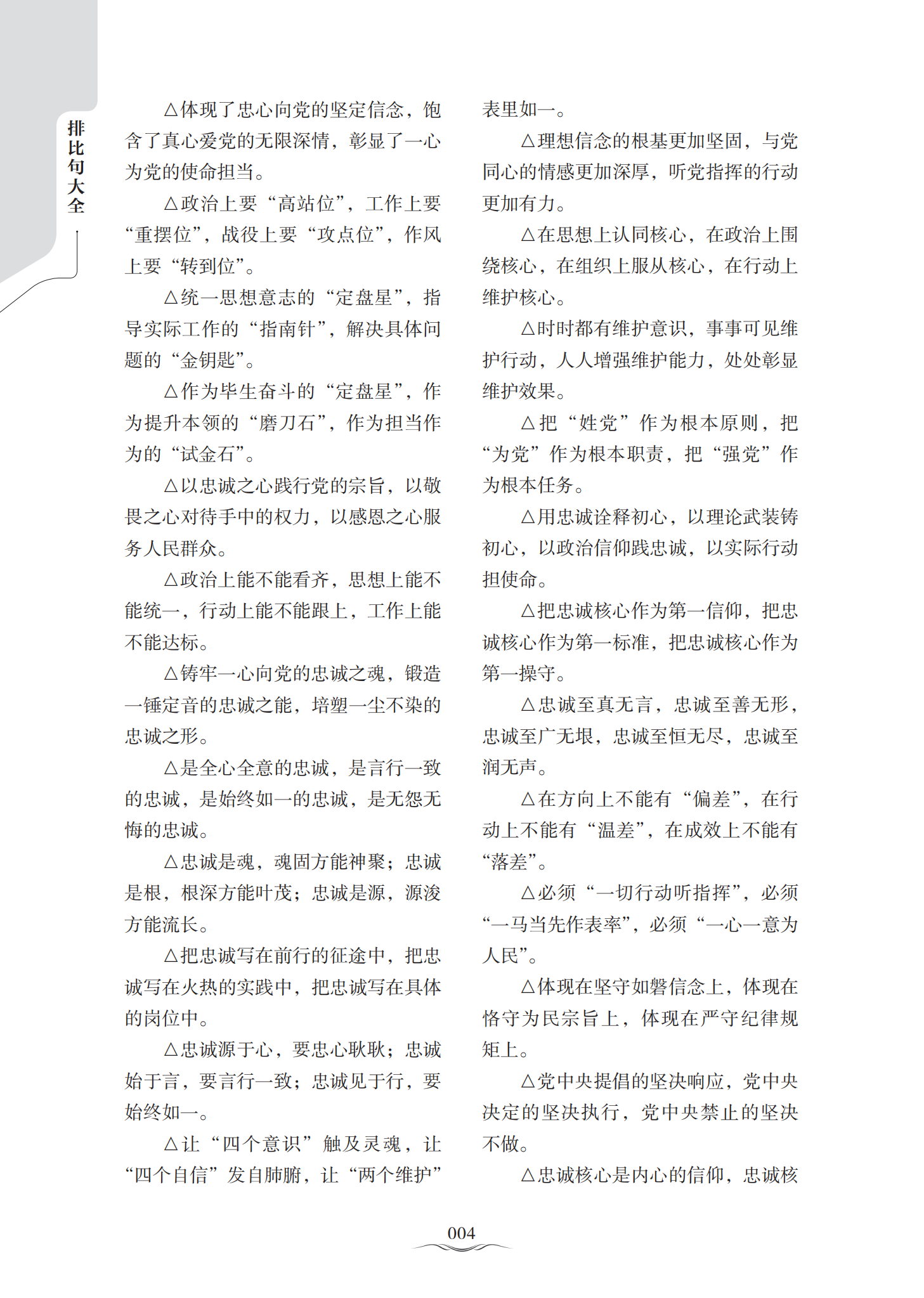排比句是文章写作常用的修辞方法,可起到条理分明、提升气势的效果。不论是讲话、报告,还是发言、致辞,使用排比句可更富节奏感、感染力,因此备受文章大家所喜爱和推崇。