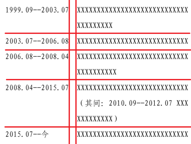 (一)简历中的参加工作时间,与参加工作时间栏所填写的必须一致;