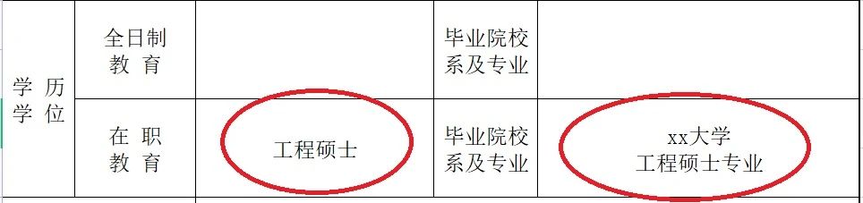 (二)学历学位栏填写的学历、学位要在简历中体现其参加学习的经历,尤其是在职学历;
