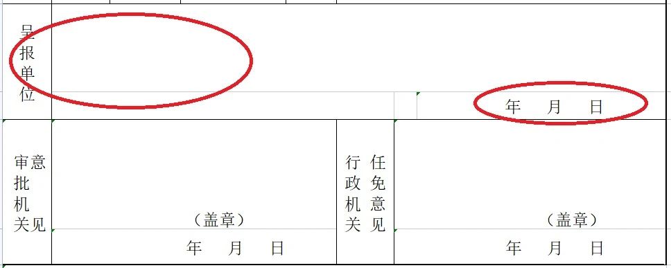 呈报单位:填写××委或×××厅(局)党组(委),并加盖印章。