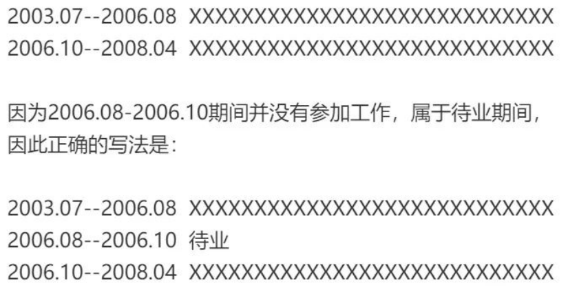 (二)简历的年份和月份必须前后衔接,不得空断(如因病、休养、待分配等都要照实填写)。