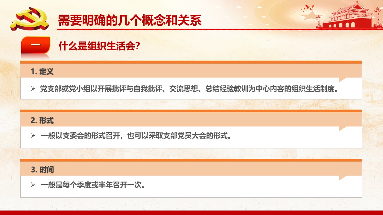 1.定义:党支部或党小组以开展批评与自我批评、交流思想、总结经验教训为中心内容的组织生活制度。