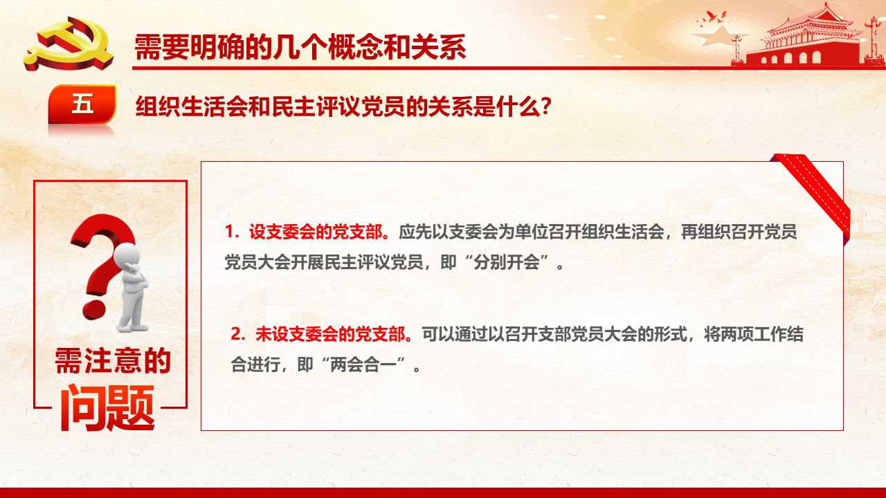 2.未设支委会的党支部。可以通过以召开支部党员大会的形式,将两项工作结合进行,即“两会合一”。