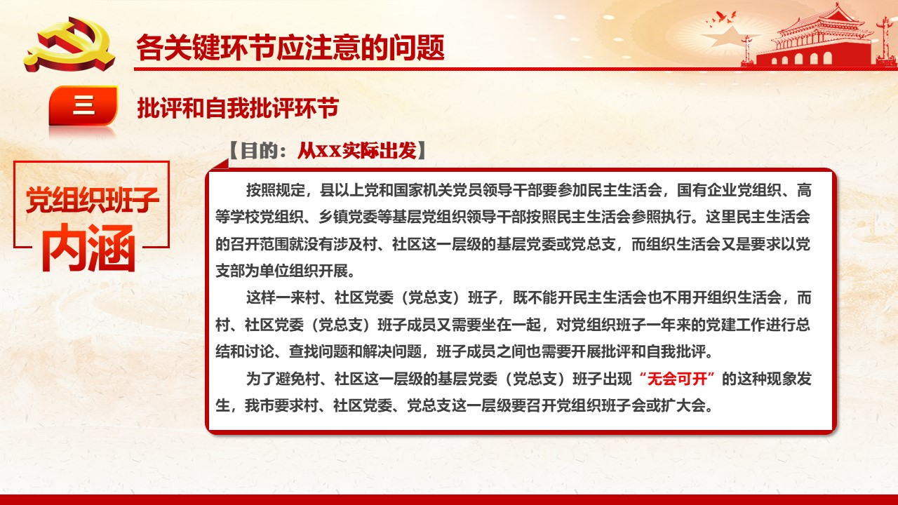 这样一来村、社区党委(党总支)班子,既不能开民主生活会也不用开组织生活会,而村、社区党委(党总支)班子成员又需要坐在一起,对党组织班子一年来的党建工作进行总结和讨论、查找问题和解决问题,班子成员之间也需要开展批评和自我批评。