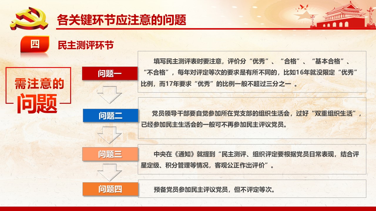 问题三:中央在《通知》就提到“民主测评、组织评定要根据党员日常表现,结合评星定级、积分管理等情况,客观公正作出评价”。